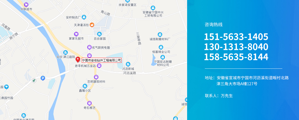寧國市安宏鉆井工程有限公司,前為安徽興旺鉆井工程隊成立于1998年,公司從事安徽鉆井(宣城打井、寧國打井、蕪湖打井、池州打井、宿州打井、桐城打井、銅陵打井、南陵打井、郎溪打井、廣德打井、績溪打井、馬鞍山打井等),江蘇鉆井(南京打井、高淳打井...
